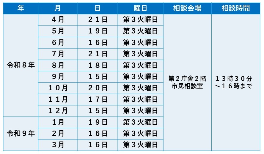 無料相談会 下記にて無料相談会を行っています。お困りの事がありましたら、お気軽にお越しください。 各市町の広報紙掲載記事は次のとおりとなっています。 行政書士無料相談内容 : 許可・認可等の手続き、相続・遺言、法人設立、各種契約書、示談書、内容証明等 春日部市役所 春日部市役所 庄和総合支所 幸手市役所 杉戸町役場 宮代町役場